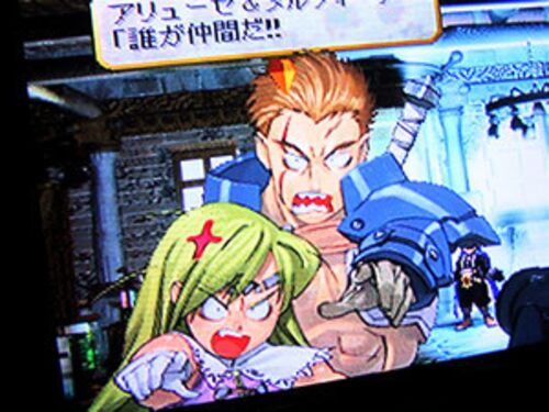 「ヴァルキリープロファイル PS one Books」、とりあえずクリアしました。面白かったです。Aエンディング(画像はAエンディングルートに出てくるアリューゼとメルティーナ。作品中唯一のギャグテイストな絵)とBエンディングの両方を見て、セラフィックゲー…